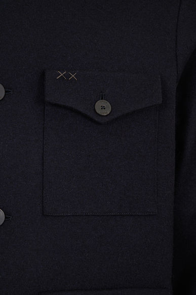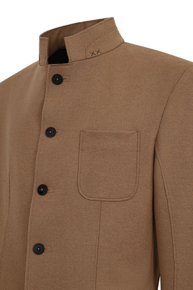 Blazer made of felted wool cashmere. Italian fit. Can be worn as lapel or Mandarin collar folding down or up.